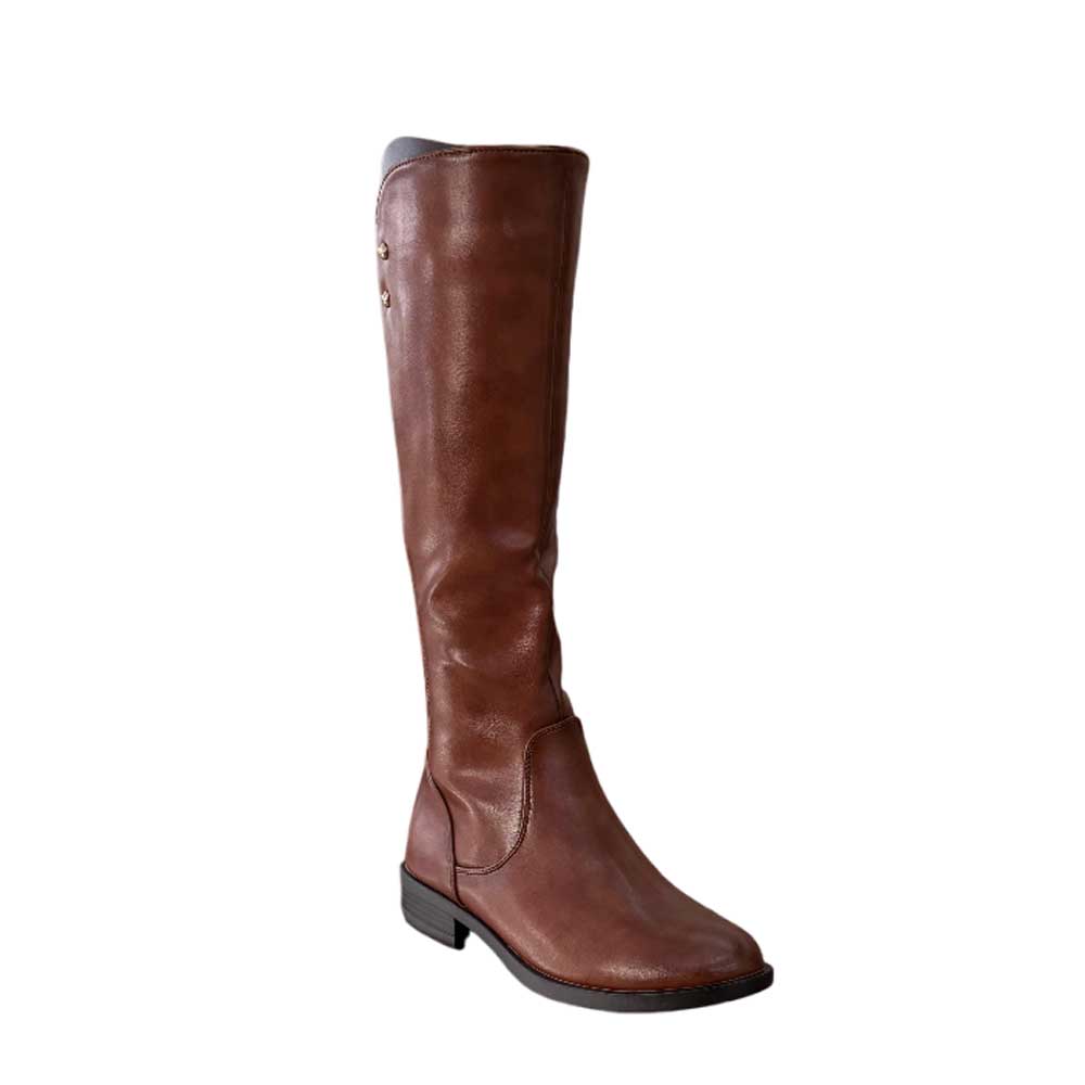 Botas Amazonas Camel. Estas botas fabricadas en polipiel en color camel con la zona trasera de la caña de material elástico se adapta a tu pierna a la perfección. Cuenta detalles dorados en la parte alta de la caña y con el interior acolchado. Este modelo tiene el cierre de tipo cremallera completa en la parte interna de la caña. Es el modelo perfecto para el día a día por su comodidad y adaptabilidad. No te quedes sin ellas.