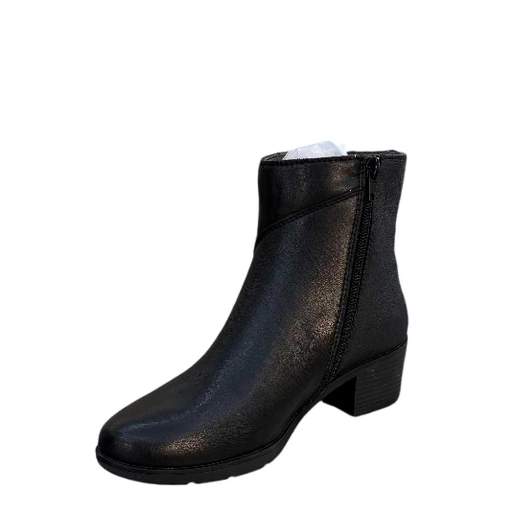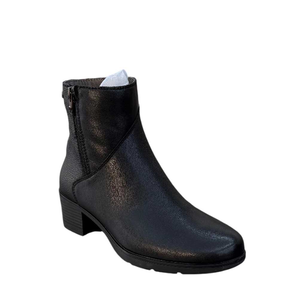 Botín de Piel Leo Negro. Botines de piel suave de tacón medio, suela de goma antideslizante. Botines con cierre de cremallera y una cremallera lateral a modo de adorno. Ideales para los pies más delicados.
