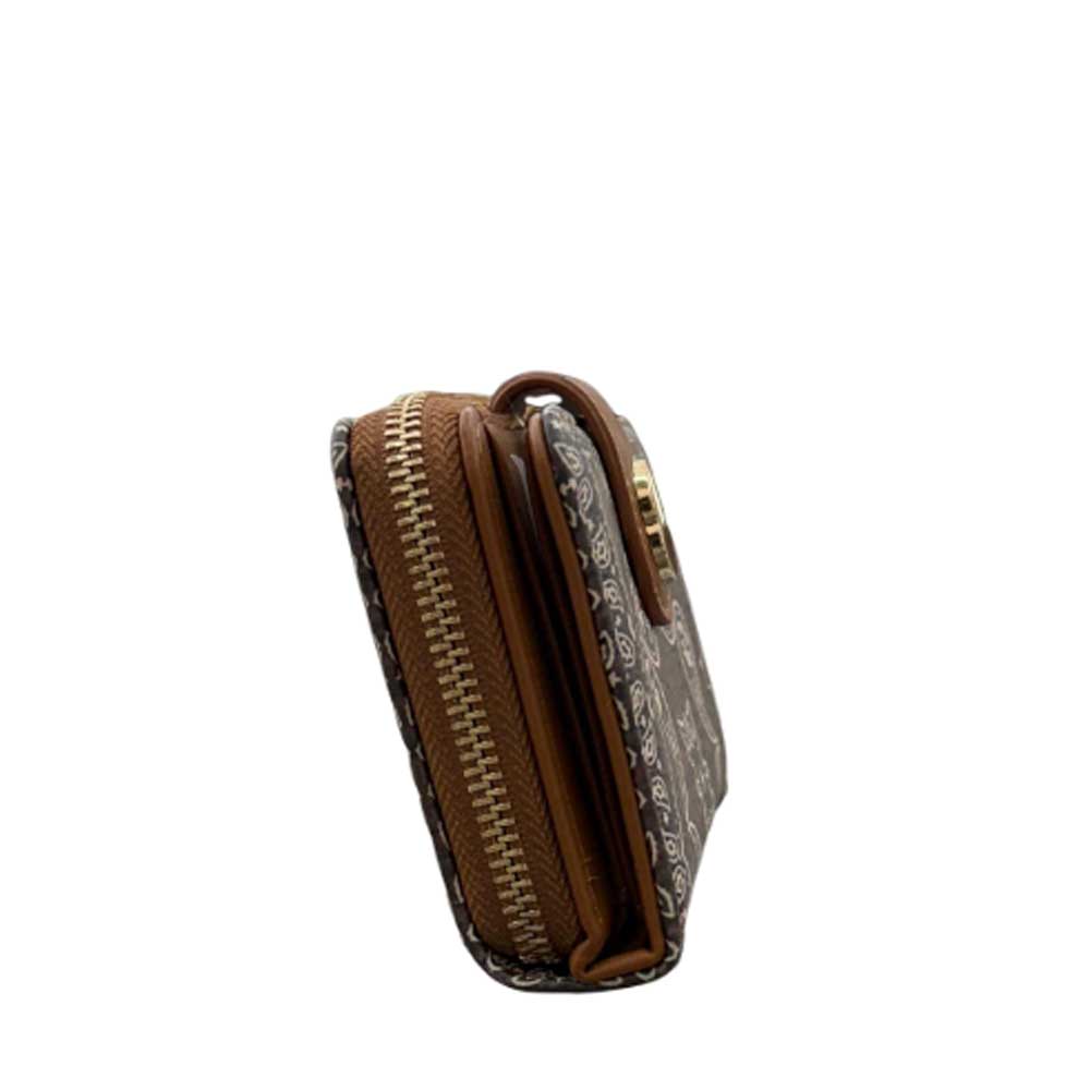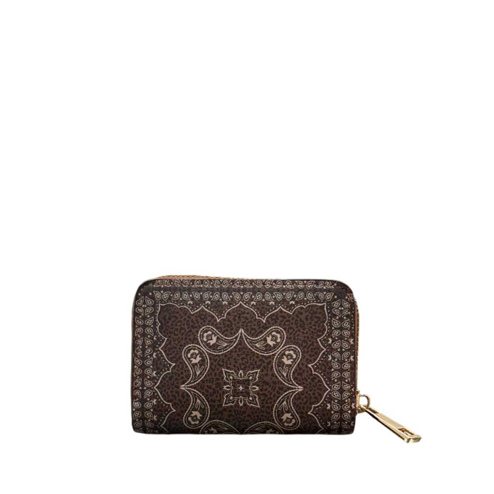 Pack de Cartera y Monedero Animal Print. Este pack de monedero y cartera hecho en material sintético con estampado de cachemira en tonos marrones es el regalo perfecto para estas fiestas. La cartera cuenta con el interior en color marrón con apartados para tarjetas y billetes con cierre de botón. Además, incluye un apartado para monedas con cierre de cremallera. El monedero cuenta con cierre de cremallera y dentro encontramos dos apartados abiertos y uno central con cierre de cremallera.