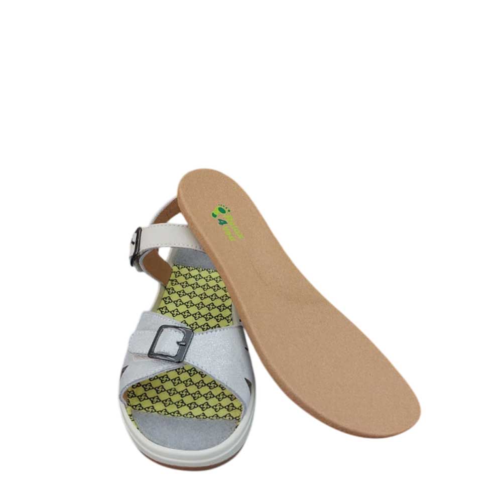 Sandalia de Piel Hebilla Plata. Este modelo de sandalia fabricado en piel en tonos plateados, cuenta con cierre de velcro tanto en la zona del tobillo como en la zona delantera, además, en estas zonas cuenta con hebillas en color plateado a modo de decoración. Este modelo también cuenta con plantillas extraíbles. No te quedes sin ellas.
